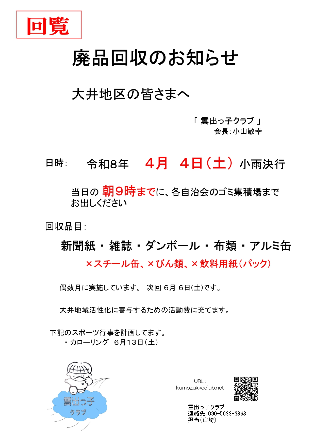 廃品回収のお知らせ(令和8年4月4日(土))